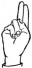 На ћирилици написано ВУКОСАВ УНИЋ састоји се из 11 слова [?]. Исписано ћириличном једноручном азбуком за глувонеме: